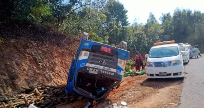 掸邦北部消息,2月27日,皎梅镇班斯洛村附近,一辆运载着木柴的车辆翻车发生事故,致使1人身亡,3人受伤。