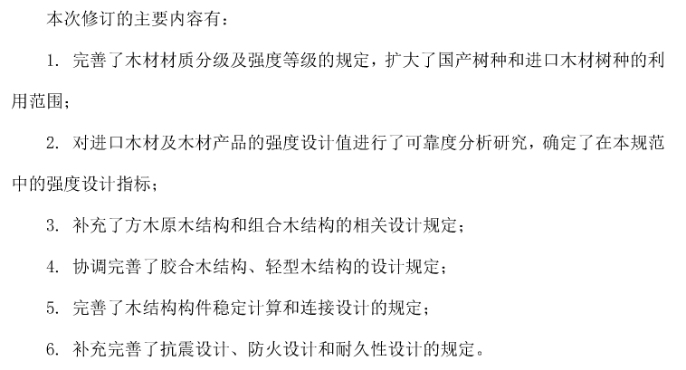 GB50005-2017《木结构设计标准》修订的主要内容: